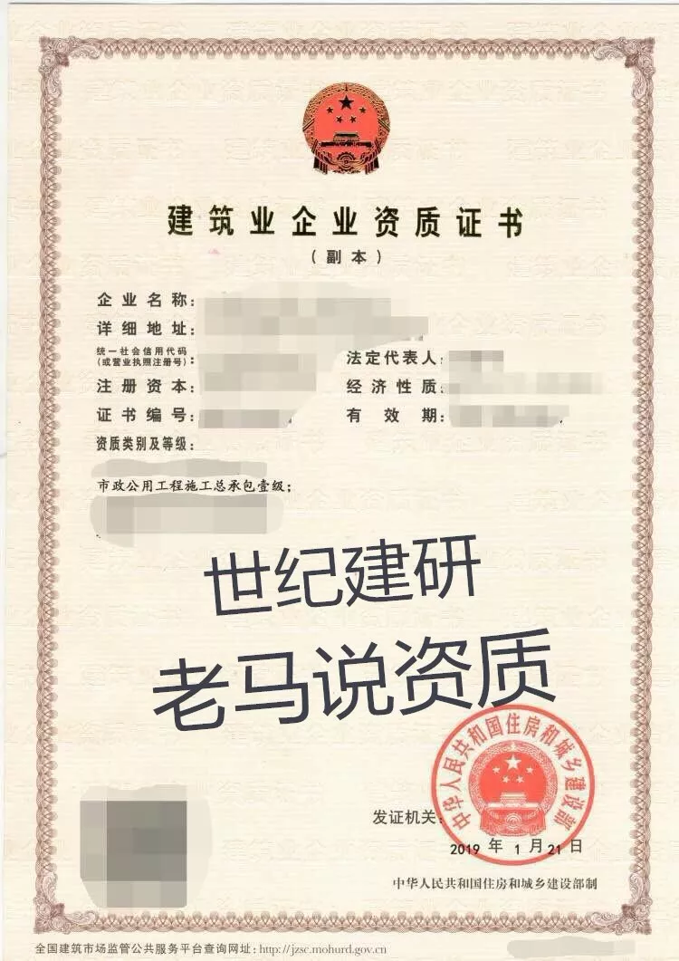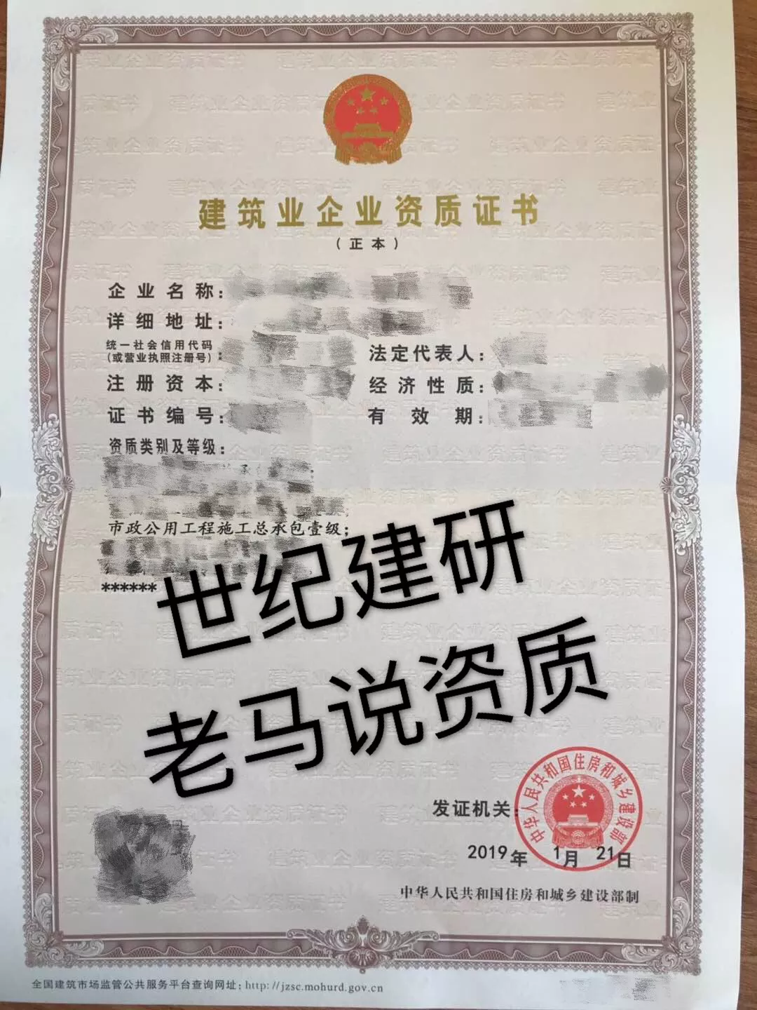 我单位协助企业升级成功,2019年1月21日取得市政公用工程施工总承包一级资质证书;
