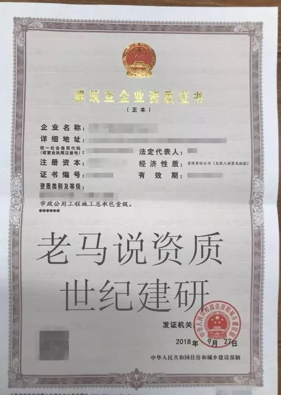 我单位协助企业升级成功,2018年9月27日取得市政一级资质证书;