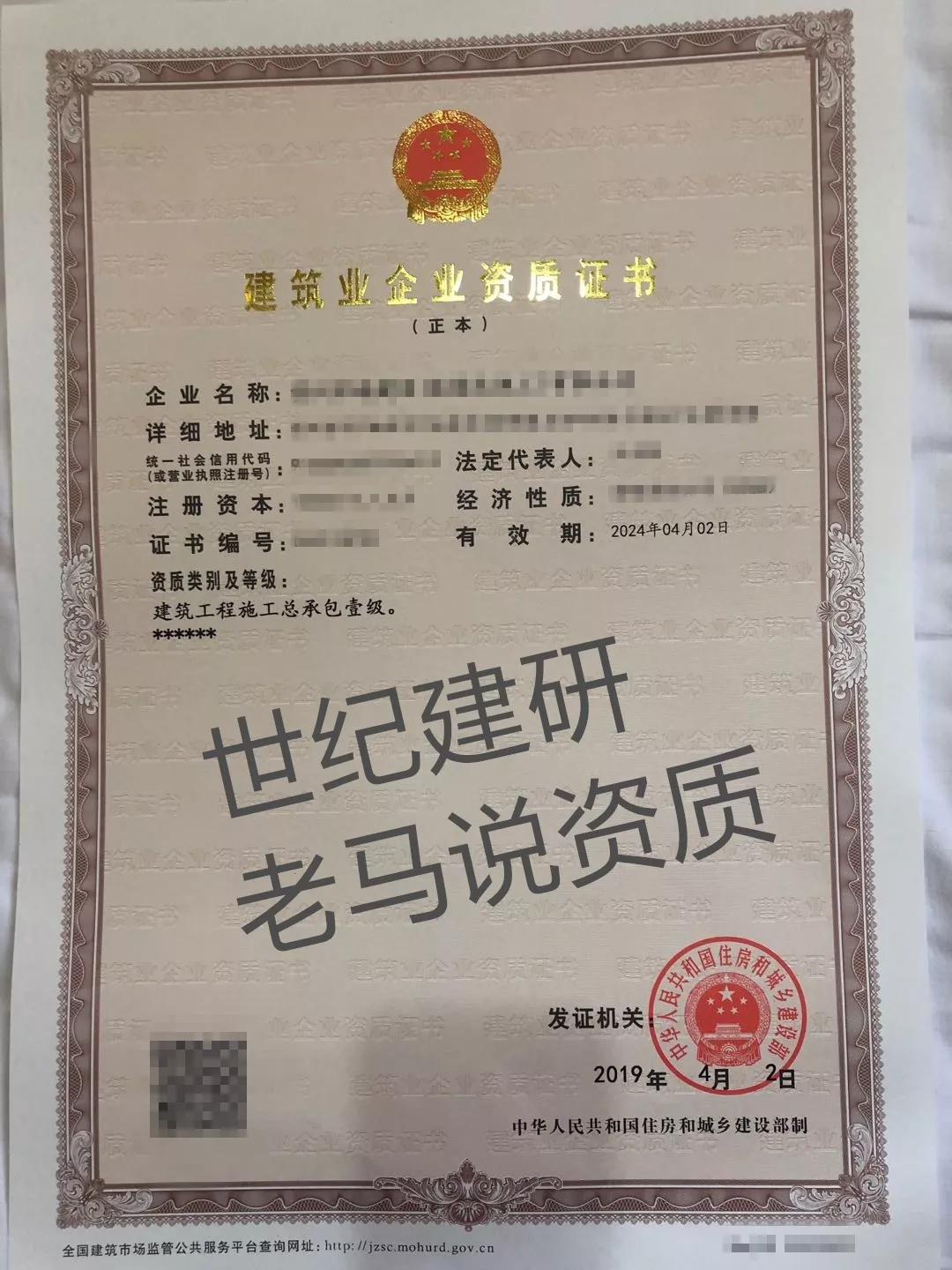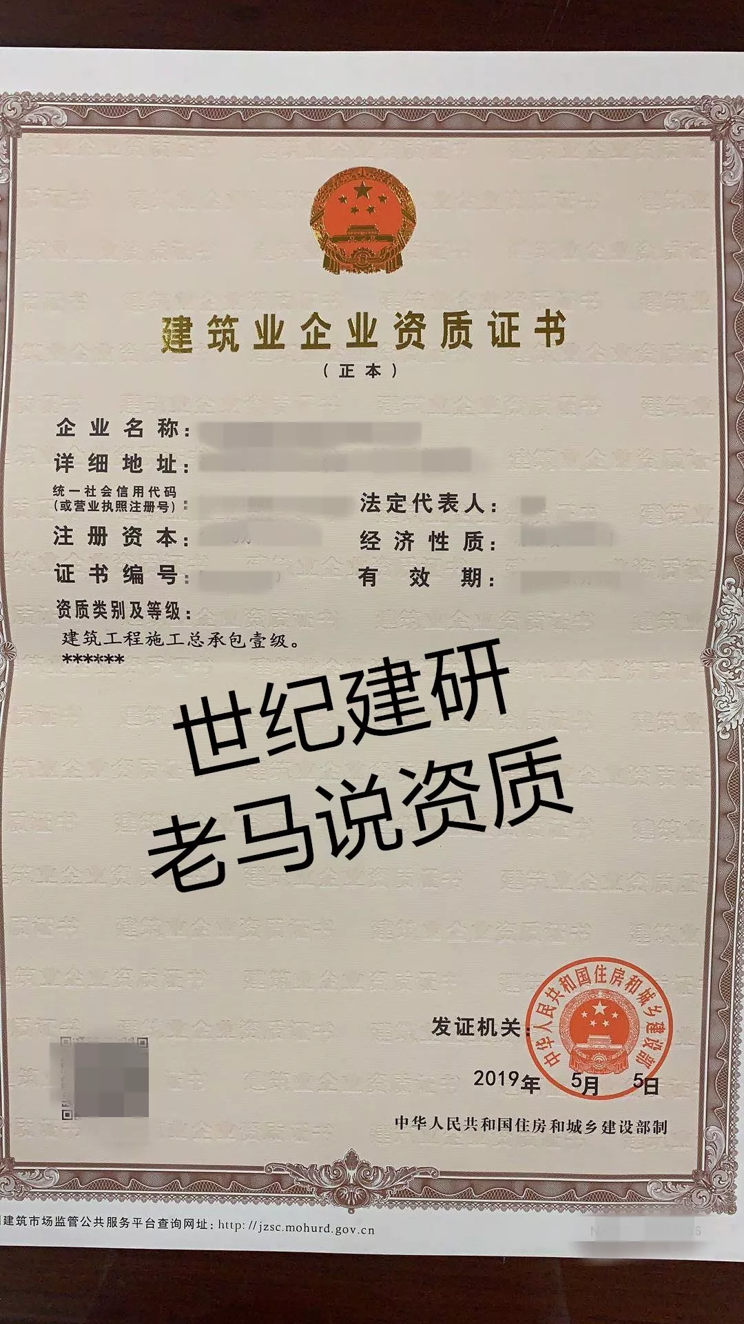 我单位协助企业跨省分立平移成功,2019年5月5日取得建筑工程施工总承包一级资质