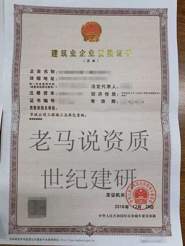 我单位协助企业分立平移成功,2018年12月28日取得市政一级资质证书;