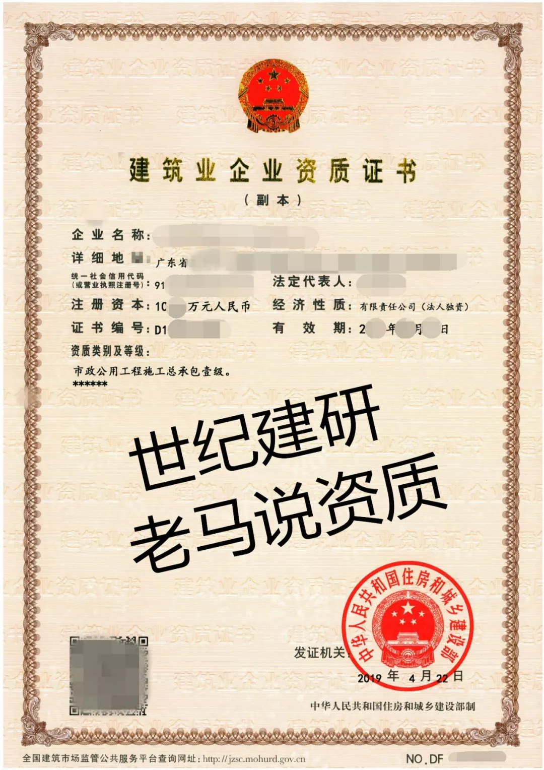 我单位协助企业跨省分立平移成功,2019年4月22日取得市政公用工程施工总承包一级资质